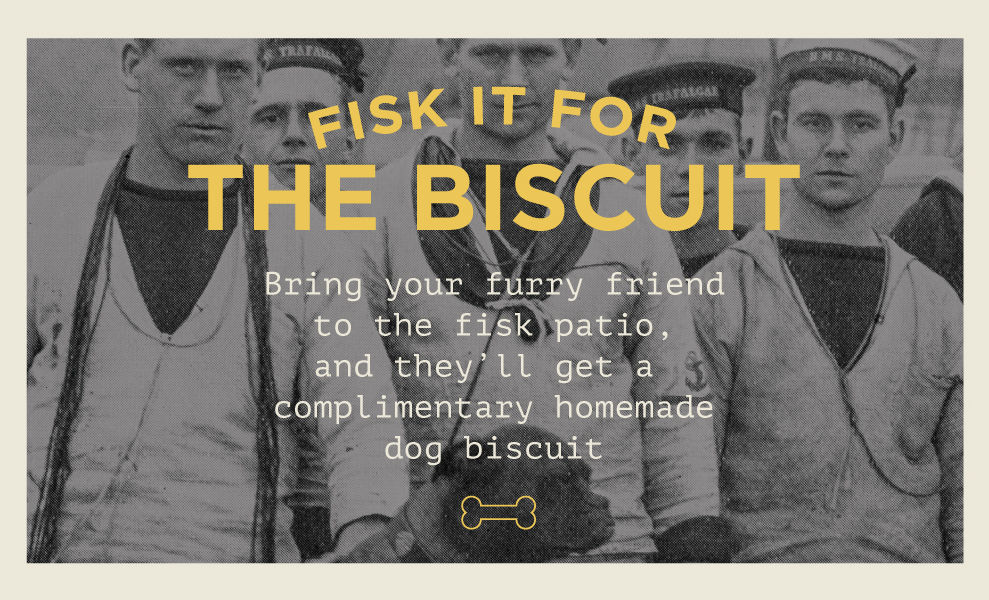 Bring your furry friend to the fisk patio, and they’ll get a complimentary homemade dog biscuit.